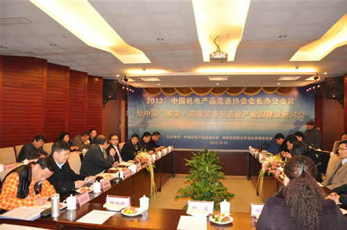 12月15日由中國(guó)機(jī)電產(chǎn)品流通協(xié)會(huì)和淮安經(jīng)濟(jì)技術(shù)開(kāi)發(fā)區(qū)管理委員會(huì)共同主辦的“中國(guó)(淮安)高端裝備制造業(yè)產(chǎn)業(yè)園研討會(huì)”在江蘇淮安舉行。我協(xié)會(huì)名譽(yù)會(huì)長(zhǎng)姜兆春、會(huì)長(zhǎng)尹魯章、專(zhuān)家組成員等一行出席了會(huì)議。會(huì)上、姜兆春名譽(yù)會(huì)長(zhǎng)代表協(xié)會(huì)做了重要講話,部分專(zhuān)家組成員作了發(fā)言。專(zhuān)家組認(rèn)為淮安有著良好的投資環(huán)境與優(yōu)勢(shì),對(duì)“中國(guó)(淮安)裝備制造業(yè)產(chǎn)業(yè)園”的未來(lái)充滿(mǎn)了信心,寄予了希望,并真誠(chéng)表示,愿為其振興發(fā)展,付出努力,做出貢獻(xiàn)。